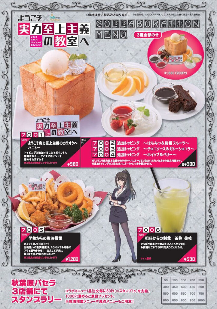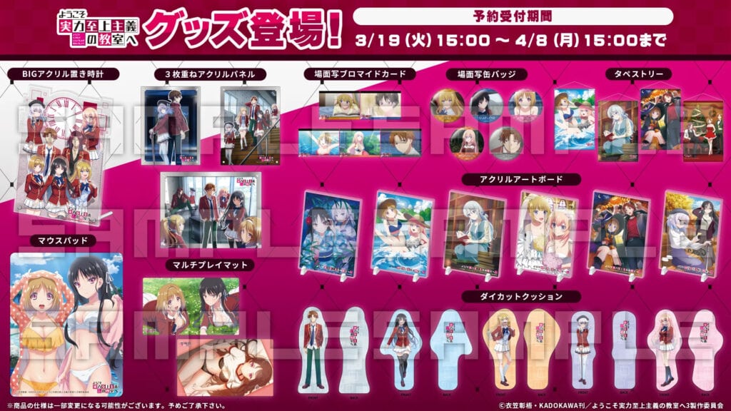 | Season 4 (Year 2 Arc) | New stage. 完全に別ゲーム。2年生編突入。 OAA + new first-years reset everything. White Room agents appear = 緊張感MAX🔥 界隈騒然。 | New characters (Amasawa, Nanase) instantly強い。 Ayanokoji’s “monster” aura intensifies.公式が最大手。 Relationships reset → rebuilding dynamics最高に面白い。完全に沼。 | “ようこそ実力至上主義の教室へ チェッカー柄ポップアップストア(AKIBAカルチャーズZONE/リンクス梅田)”開催。 “AnimeJapan 2026” stage + advance screening drives peak exposure。供給過多。 Hashtags: #よう実 #よう実4期 #ホワイトルーム #2年生編 |