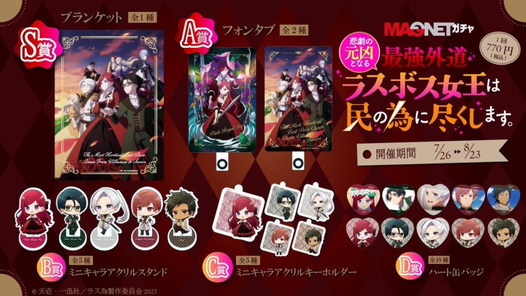 | Season 1 (2023) | Otome-game reincarnation → Last Boss fate-avoidance strategy begins 🔥 Pride uses future knowledge to break tragedy flags. The Val rescue & human trafficking arc is the 最大の山場. Establishes the “救世主型ラスボス” core identity. | “How is the Last Boss this 尊い?” shook the fandom 💜 Overpowered but never arrogant = 尊さ爆発. Steil & Arthur dynamics triggered widespread 沼 entry. Battle episodes often labeled 情緒崩壊回 💔 | 🔍 2026 rebroadcast caused search spikes (“ラス為 2期”, “ラス為 見逃し”, “ラス為 グッズ”). 🐦 #ラス為 #ラス為再放送 firmly established. 🎨 Gratte collaboration (2025/1/17–2/23) across major cities. 🛍️ New official goods ongoing since 2024/8/9 (eeo Store池袋 & online). |