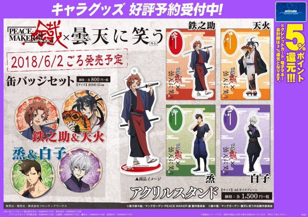 | Gaiden① Ketsubetsu, Yamainu no Chikai | Tenka and Yamainu backstory revealed. Motivations and resolve become clear. Everything behind the scenes connects here. The ending hits hard. 神シーン! | Tenka’s leadership goes beyond peak 🔥 強すぎて尊い. The gap between strength and loneliness hurts. Yamainu cast = instant 推し増加. 完全に沼る回。 | 「AnimePlaza池袋 コラボカフェ(曇天に笑う×PEACE MAKER 鐵)」collab held. Movie release timing = strong merch rollout. Now mainly discussed as 名シーン集。 |